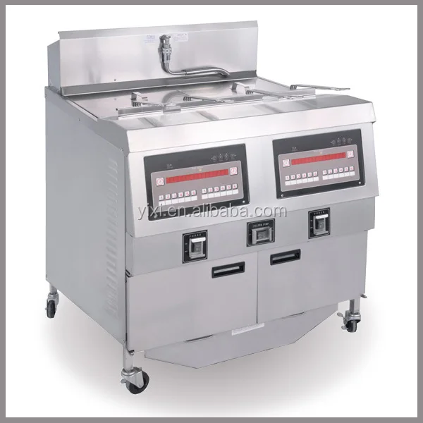 Open fryers of OFE, OFG series are made of high quality 304 stainless steel, elegant and durable, automatically control time and temperature, convenient for the daily operation. The maximum frying temperature is up to 200℃. There is the oil filter system equipped inside the deep fryers, so the oil can be filtered for several times, extend the life of frying oil, improve quality of food, reduce the cost of oil.