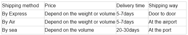 | Shipping mode | by sea, air, international express etc |