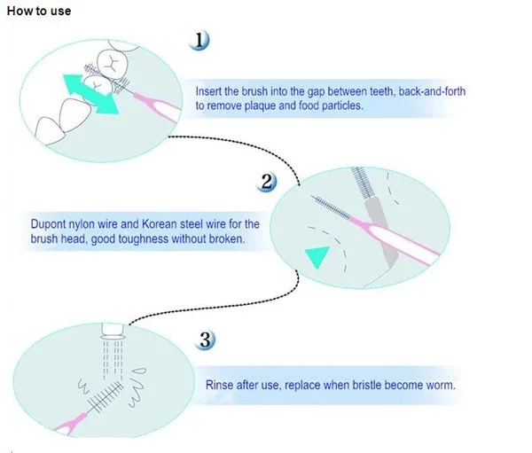-Insert between teeth, interdental spaces, or dental appliances.