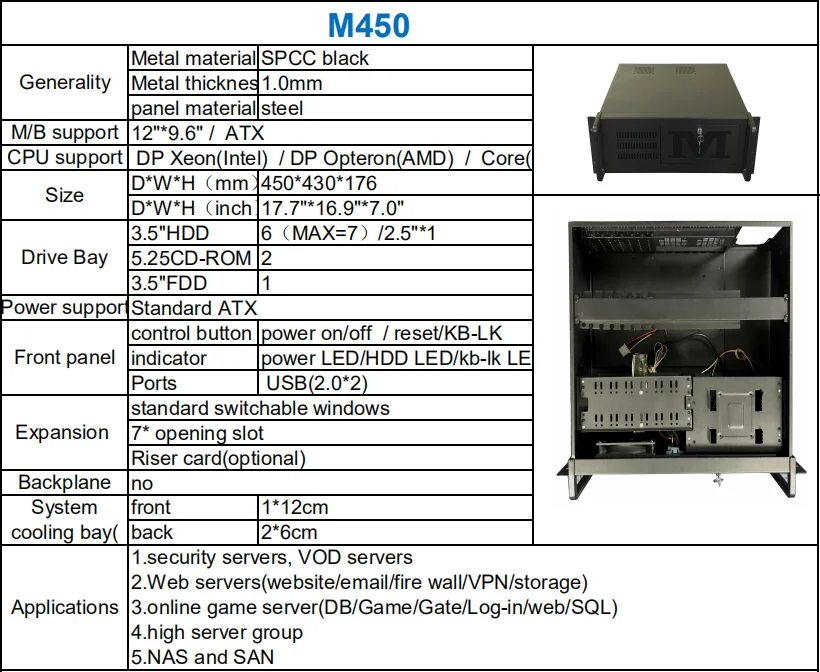 This case can suppot 6 3.5inch HDD and it's 7 slots in rear window . it support ATX power supply and we sell it with one 12cm fan.