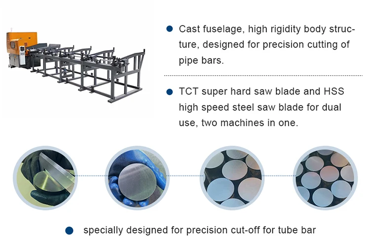 1 This machine is a fully automatic high speed metal circular saw machine, it specially designed for cutting round solid rods and square solid rods,according to customer’s requirements for high speed cutting and high precision cutting. Saw cutting off speed:9-10seconds sawing off diameter 90mm round solid rods. cut section roughness :3.2, work accuracy: saw blade flange end/radial beat ≤ 0.02, saw section with workpiece axial line vertical degree: ≤ 0.2 / 100, saw blade repeated positioning accuracy: ≤ ± 0.05, The main parts of Naisite high-speed metal circular saw machine are imported from Japan.