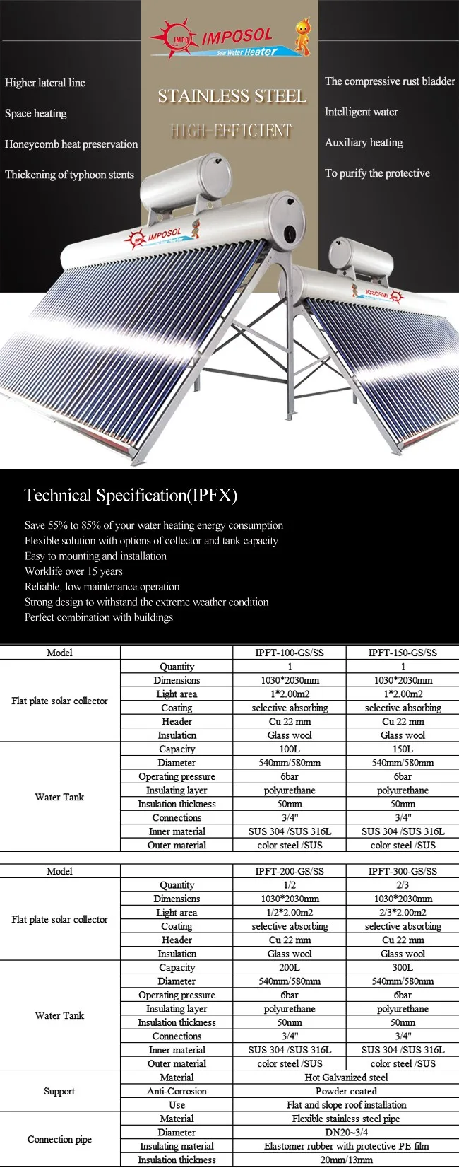 | \t 300L 540mm/580mm 6bar polyurethane 50mm 3/4″ SUS 304/SUS319L