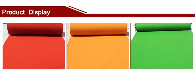 We are professional carpet manufactuer. We supply all kinds of needle punch carpet, such as exhibition carpet(plain & ribbed,rib), Automotive carpet, velour carpet, velaour jacquard carpet, double color jacquard carpet, and Geo-textile materials,etc.