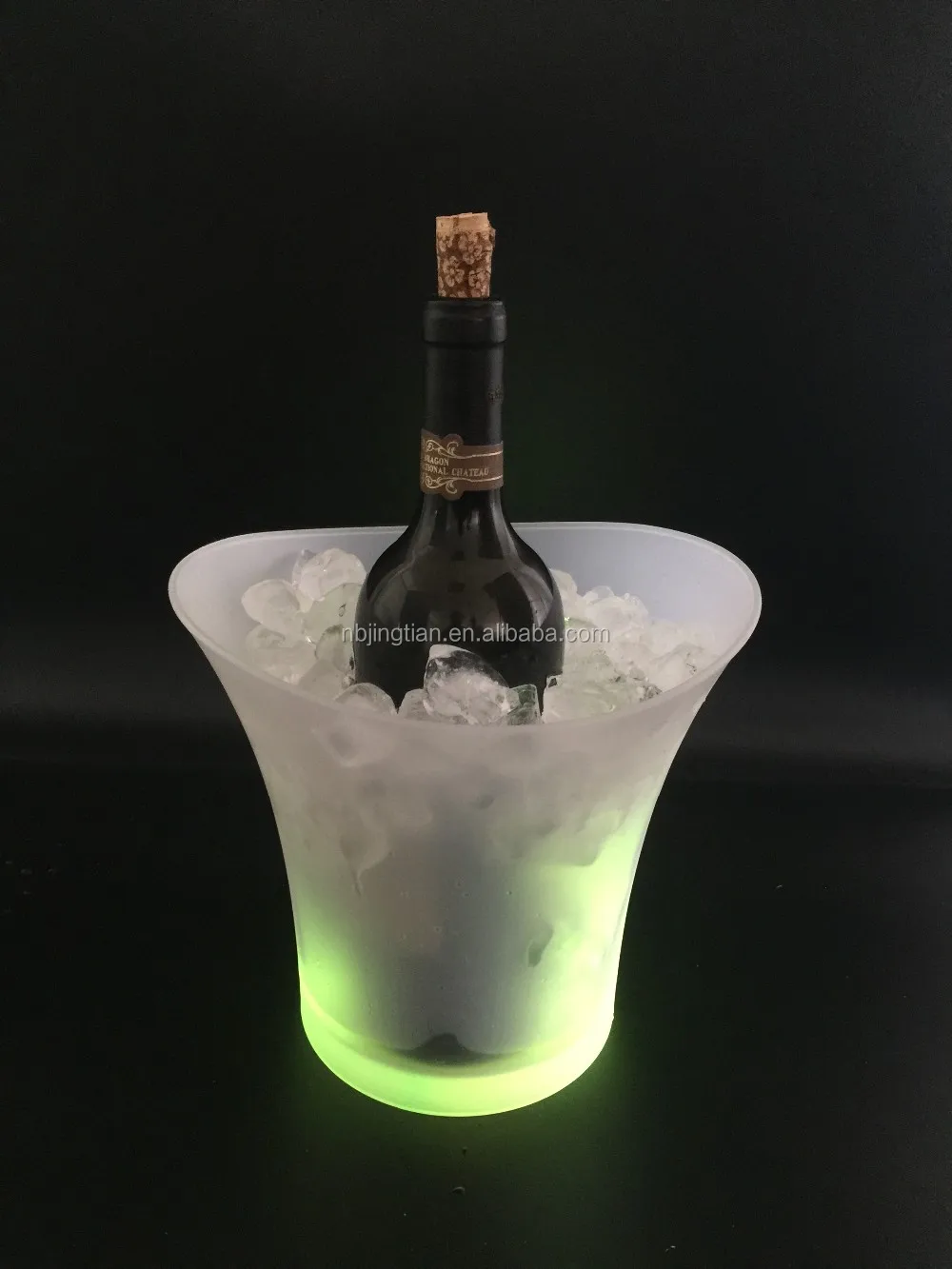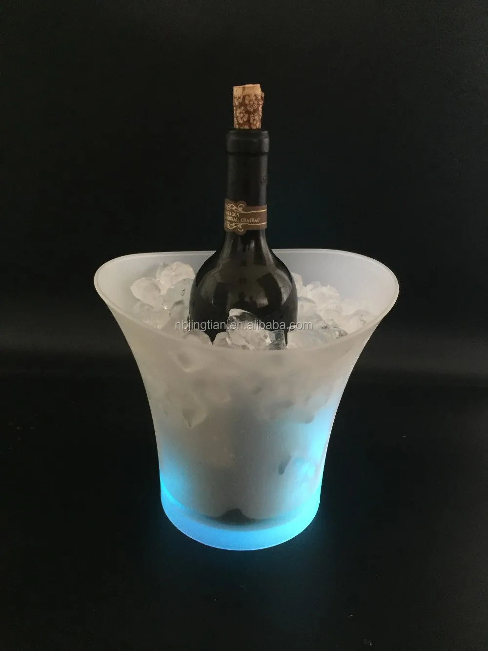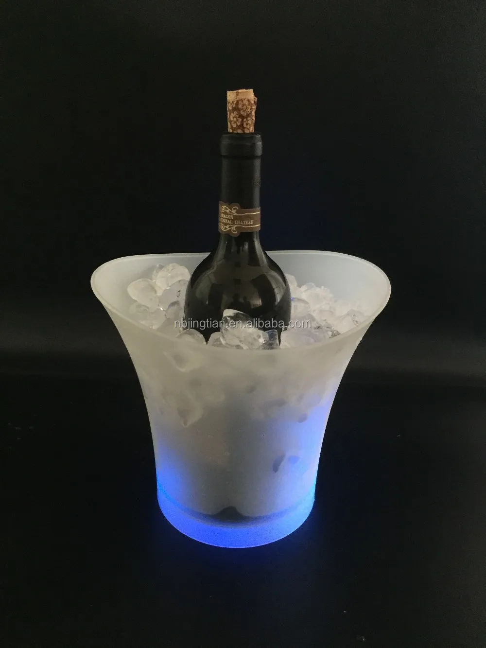 Put the ice cubes in the container and put in 2 AA batteries to ice the wine.