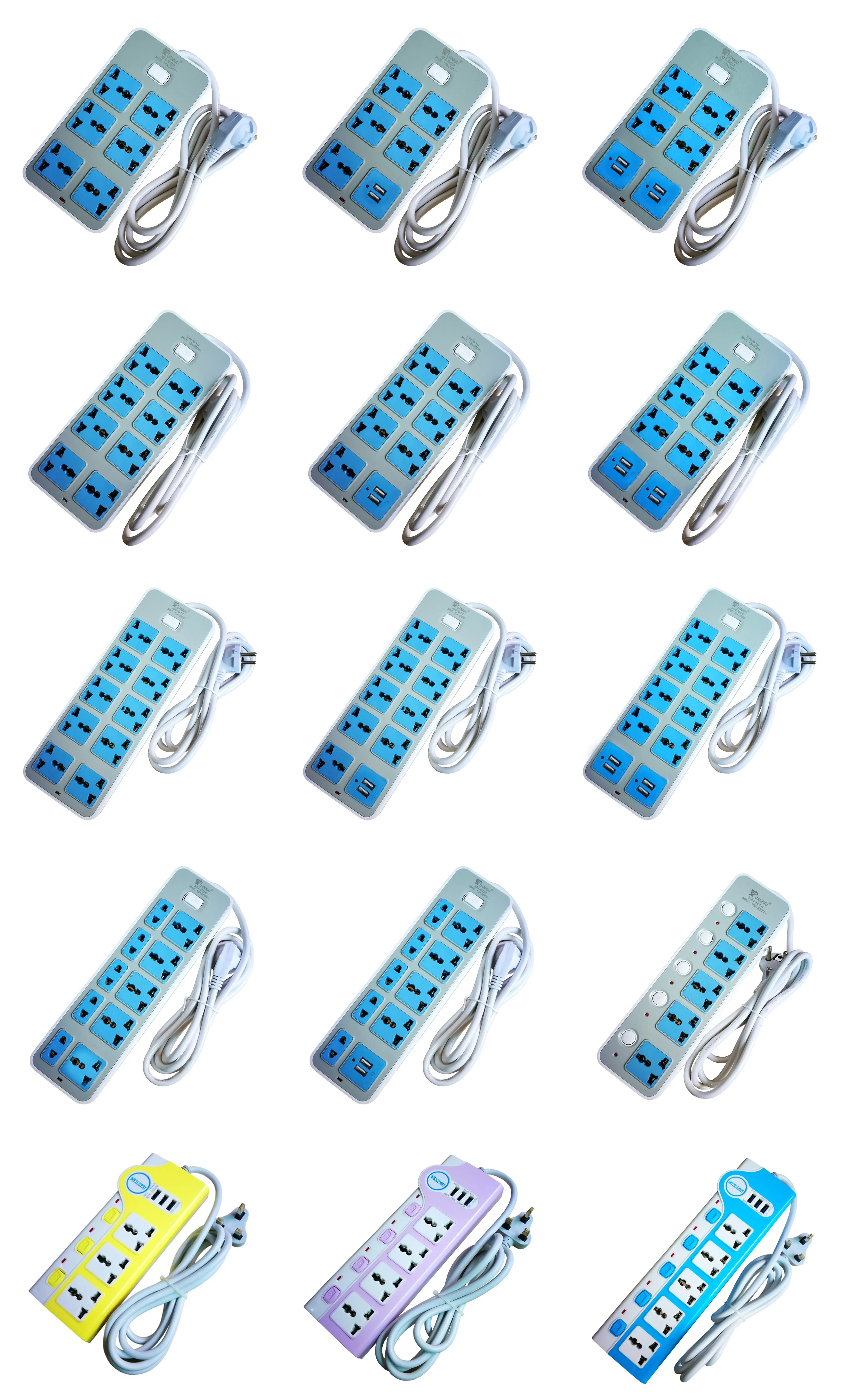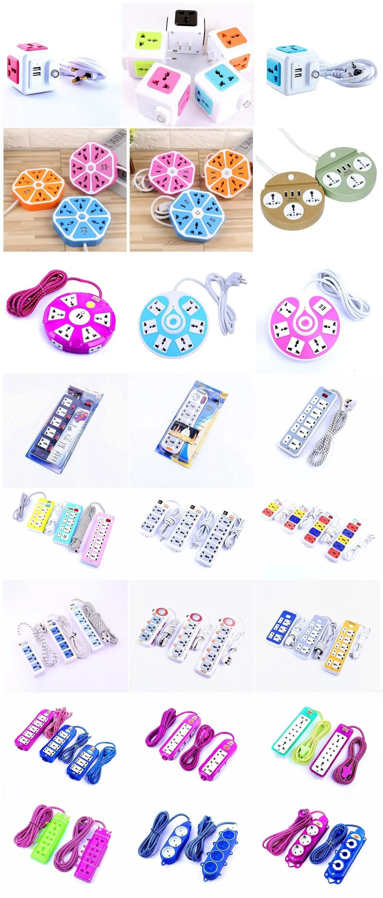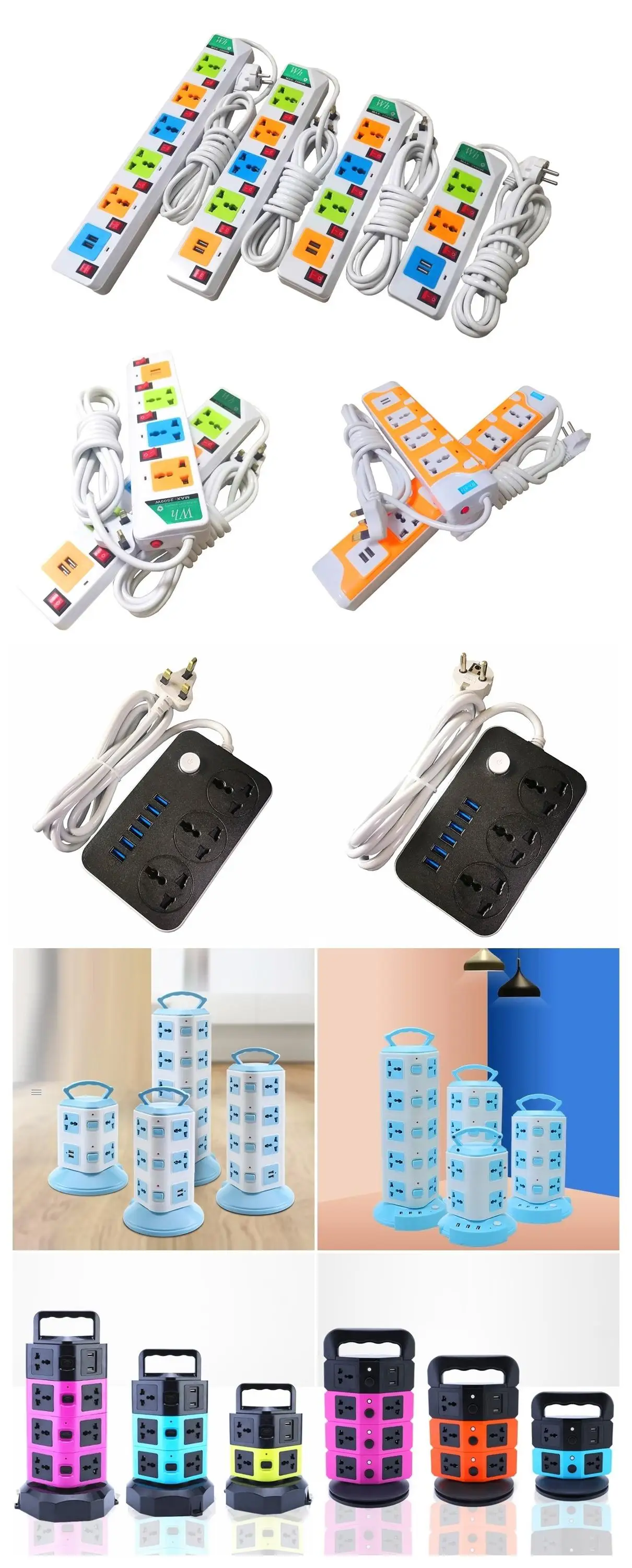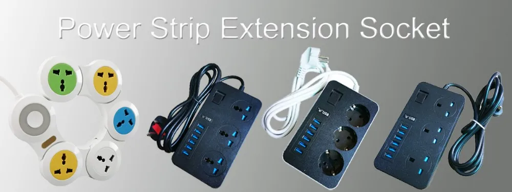 UK Plug 7 Way Universal Switched Power Strip Electrical USB Extension Socket