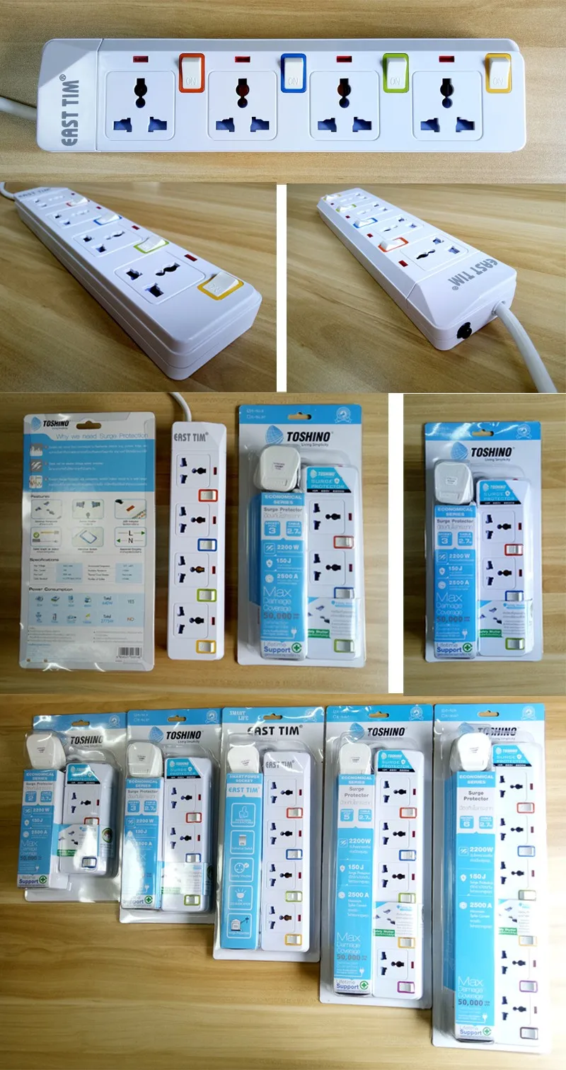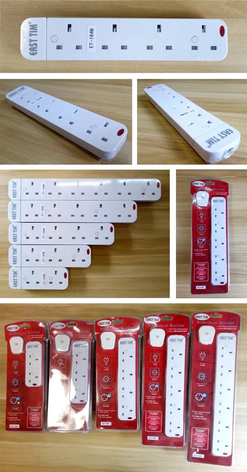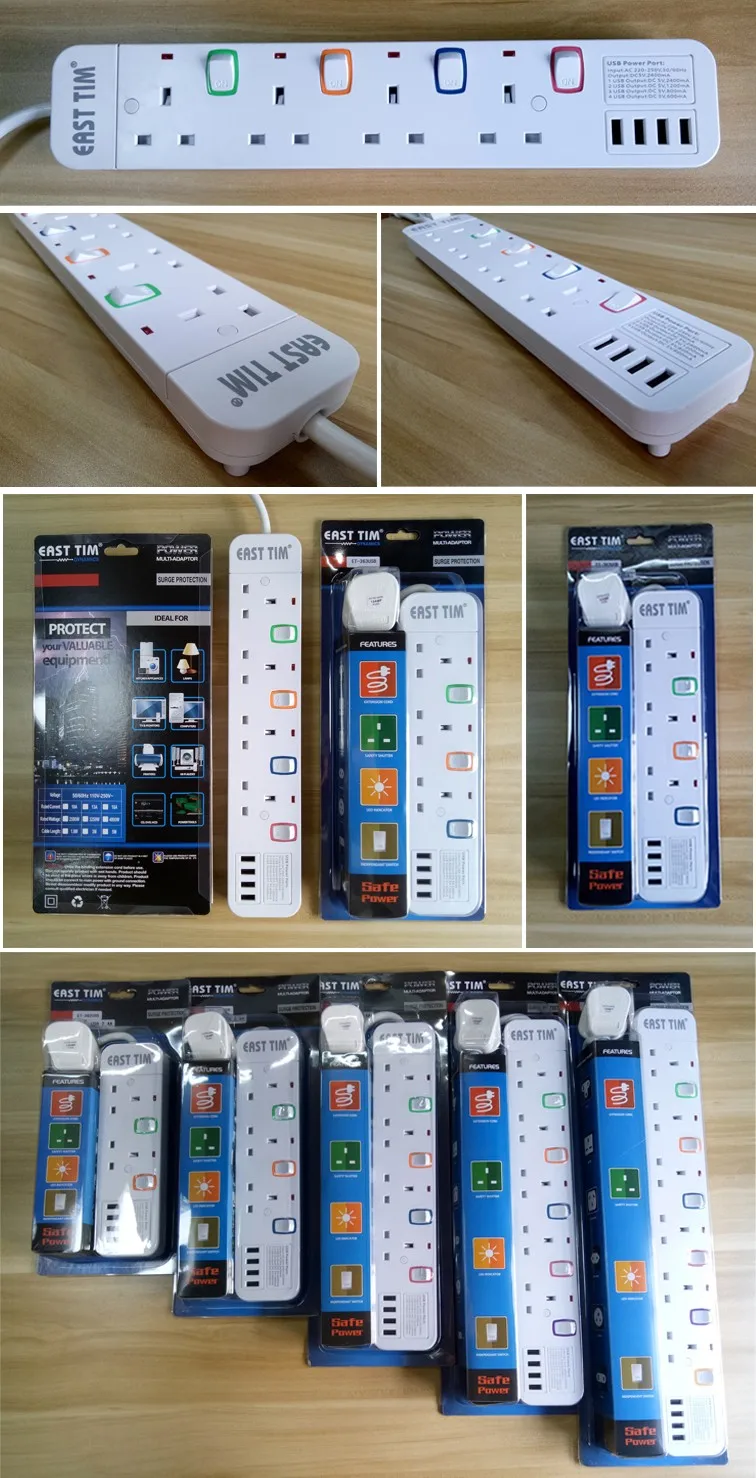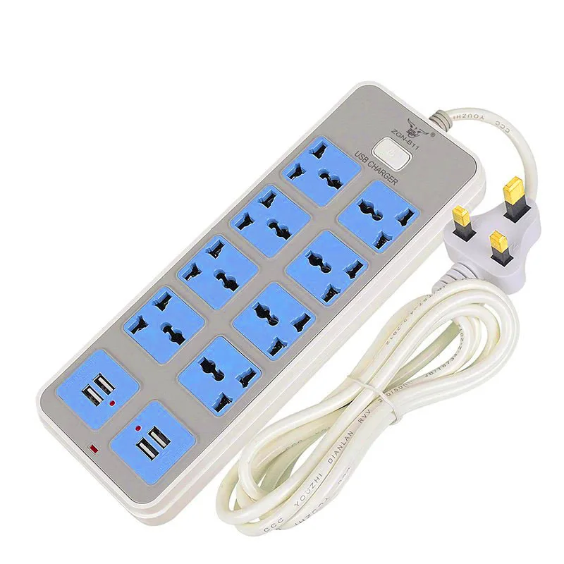 UK Plug 8 Universal Power Strip Outlet Electric Extension Socket with 4 USB Port