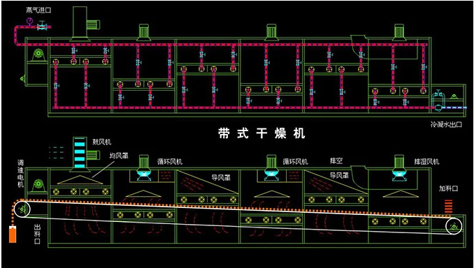 Mesh belt dryer adopts hot air and low temperature drying, mesh belt dryer is a continuous drying equipment for batch production, especially suitable for the drying of sheet, strip and granular materials with good air permeability and high moisture content, and especially suitable for materials with low temperature requirements.
