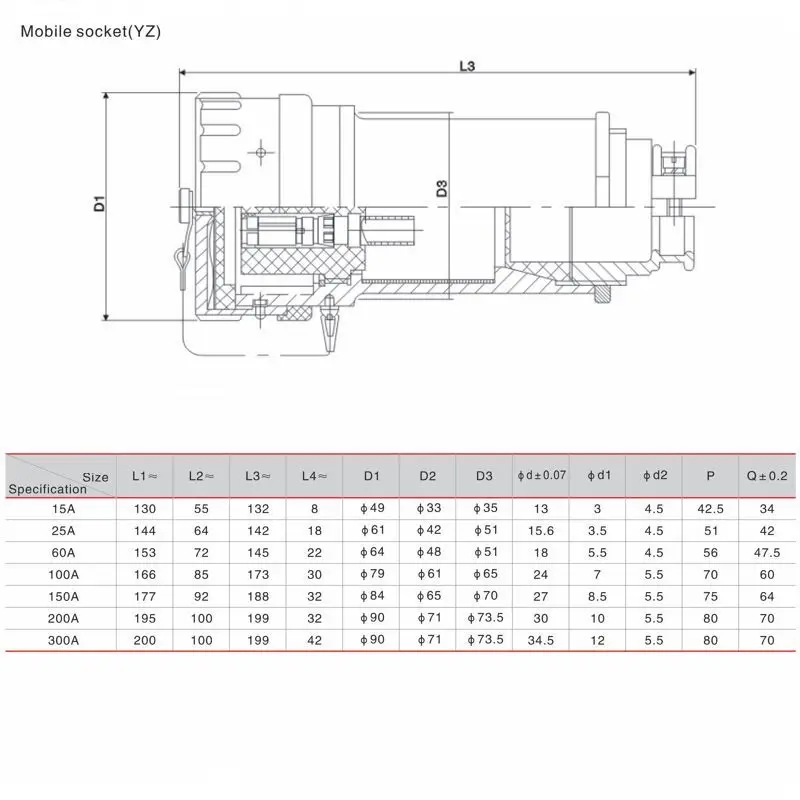 panel fixed type(GZ), 2.mobile(YZ), 3.oblique type fixed socket (XGZ). Connection plug and socket for the bayonet,fast
