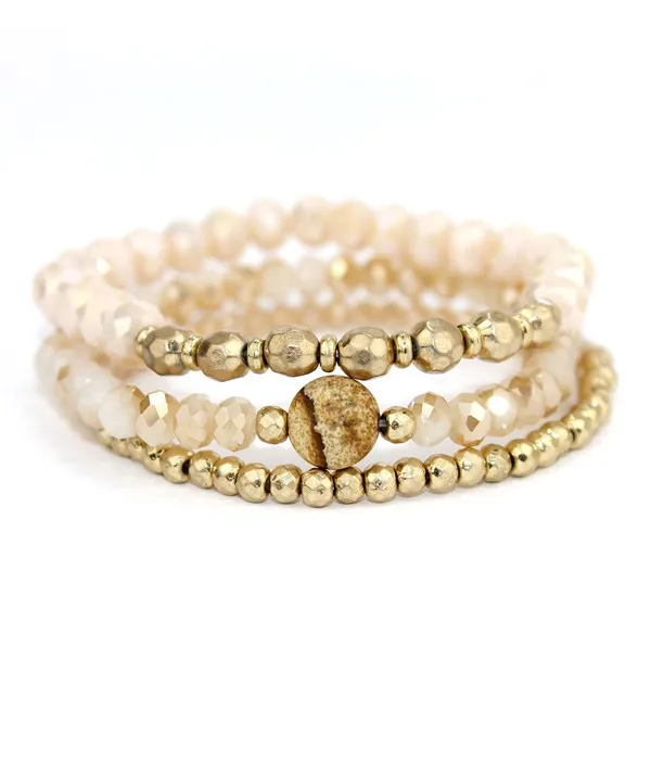 Handmade Semi precious Stone Boho Jewelry Elastic druzy Bead Women Gift Sets Bracelet