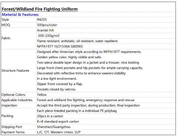 NFPA 1977 Forest/Wildland Fire Fighting Uniform