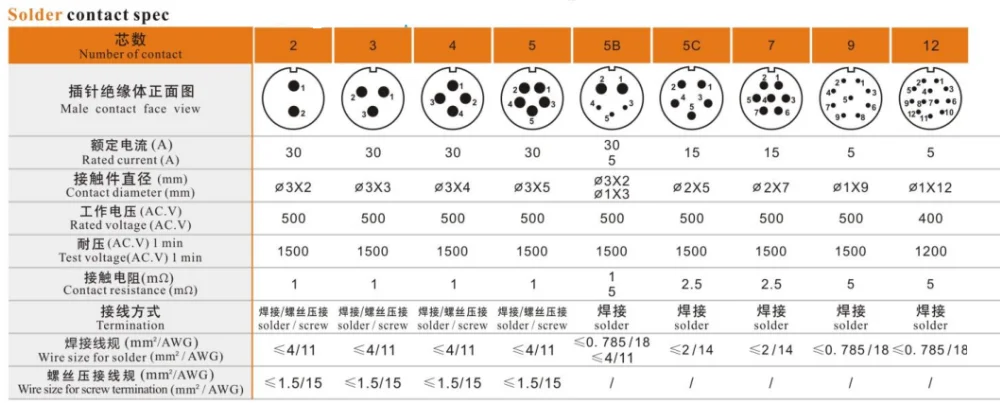 0.785m㎡-4m㎡ / 11AWG-18AWG