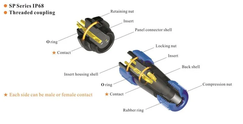 Threaded female SP2111 S series plastic 2 3 4 5 7 9 12 pins in-line cable connector