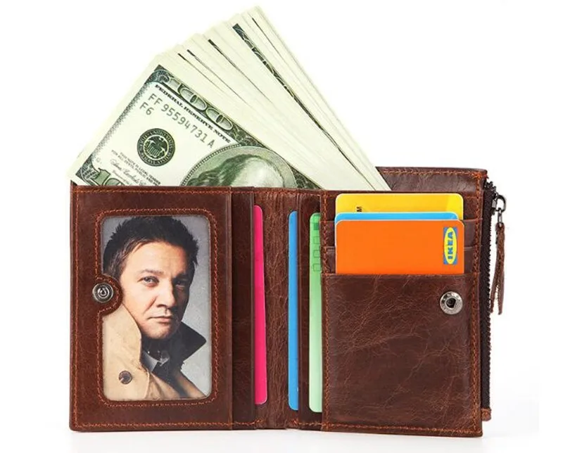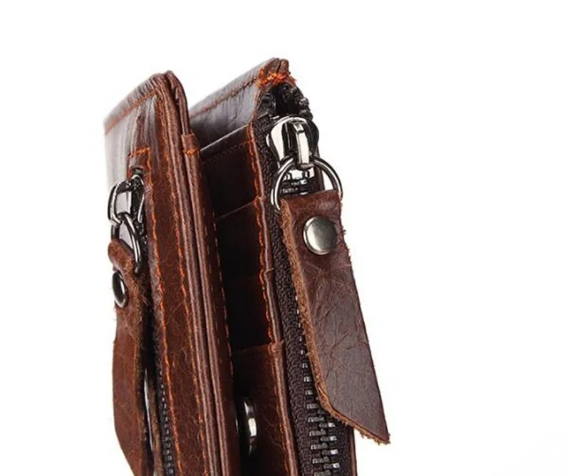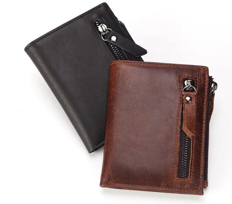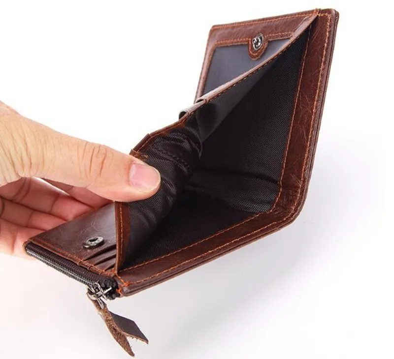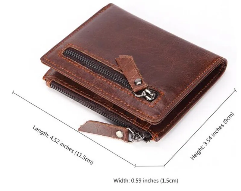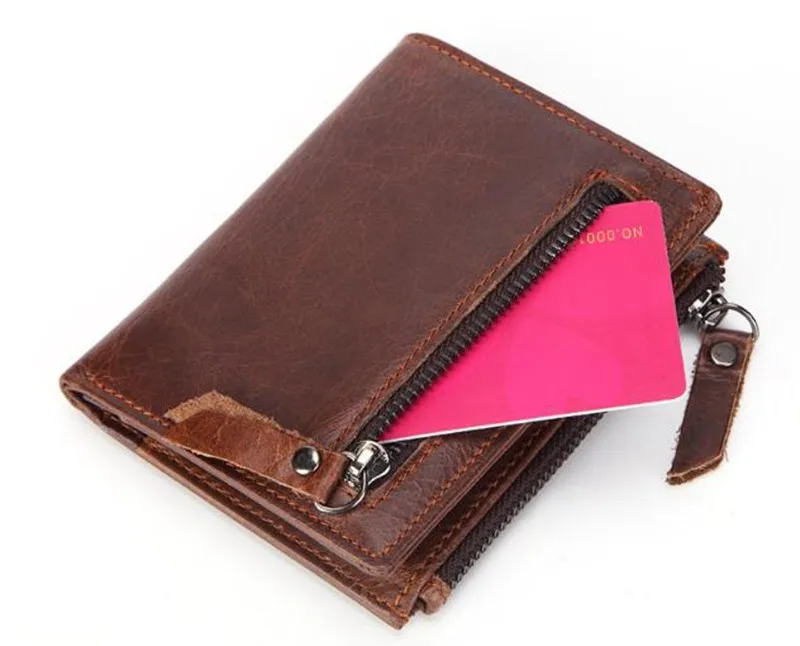 Dreamtop DTE502 front zipper pocket brown leather wallet customized OEM vintage style short money wallet