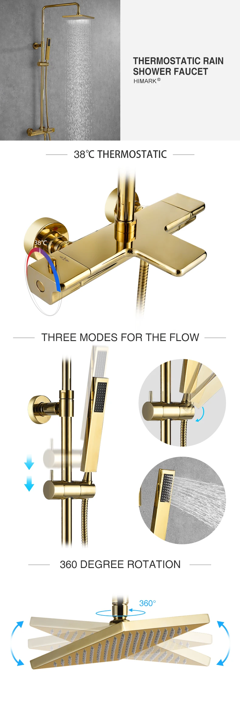 Product description | HIMARK bathroom kraan robinet colonne mitigeur douche columna de ducha gold thermostatic mixer bath & shower faucet system set | |||||