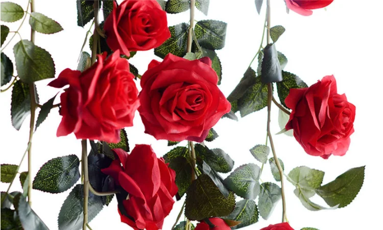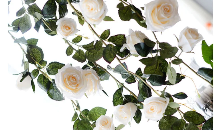 High Quality 180cm Artificial Rose Vine Silk Flower Garland of Rose