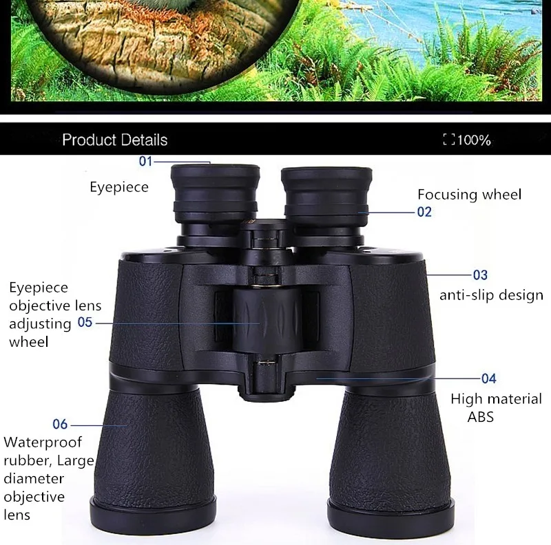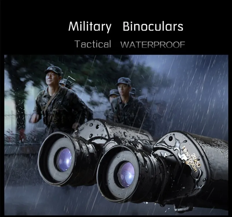 Blue Film Power Zoom Lens 20x50 HD Binoculars Telescope with Low-Light Night Vision Function for Day and Night Hunting, Camping
