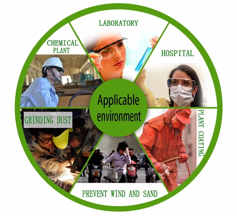 PC lenses can resist high-speed particles 45 m/s impact, can effectively prevent iron filings, ash sand, gravel and other objects due to splash and the danger of bad eye.