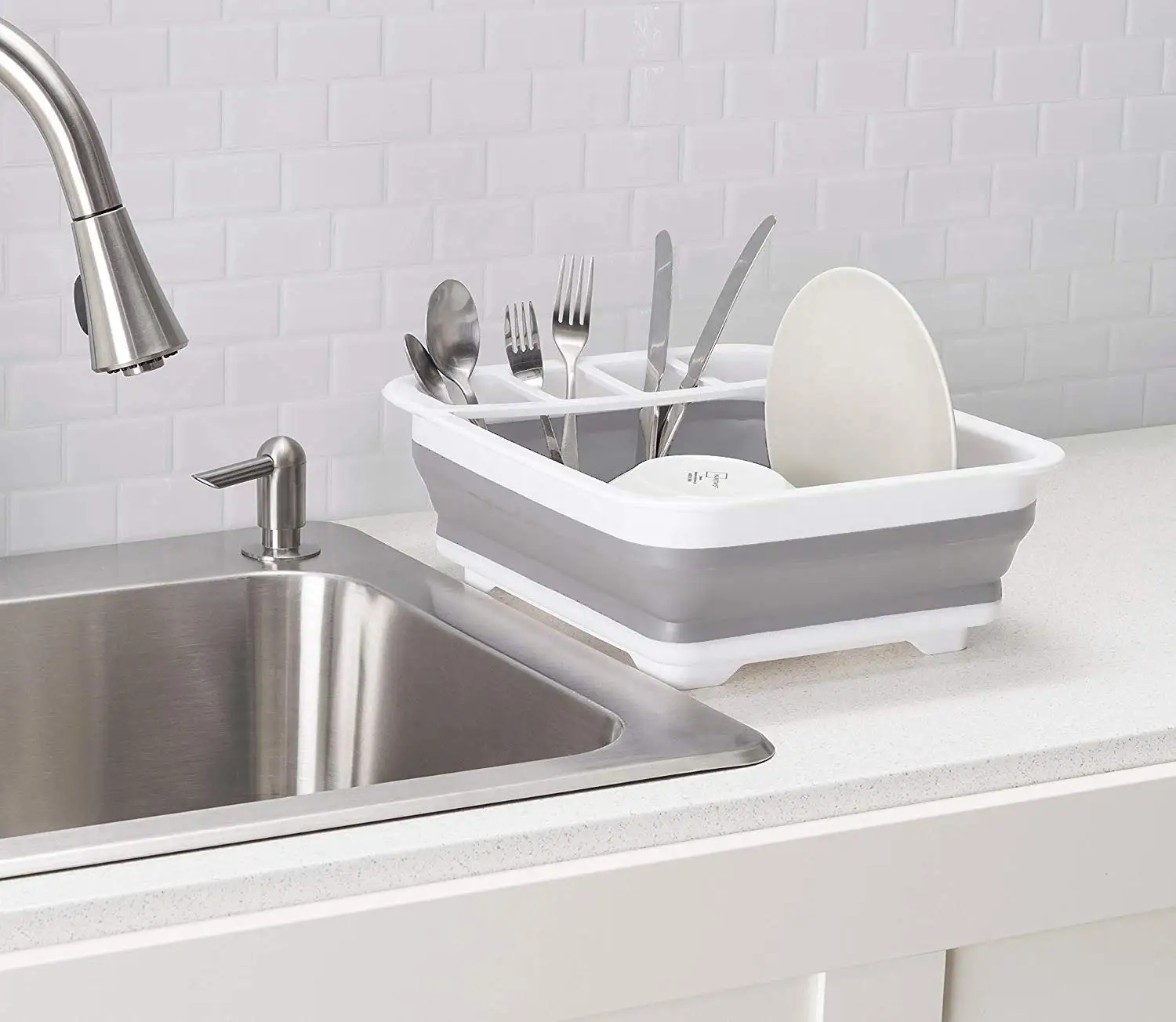 The madesmart collapsible dish rack is the answer to limited counter space. Utilize this space-saving dish rack in the sink or on the countertop. Collapses for easy storage when not in use.