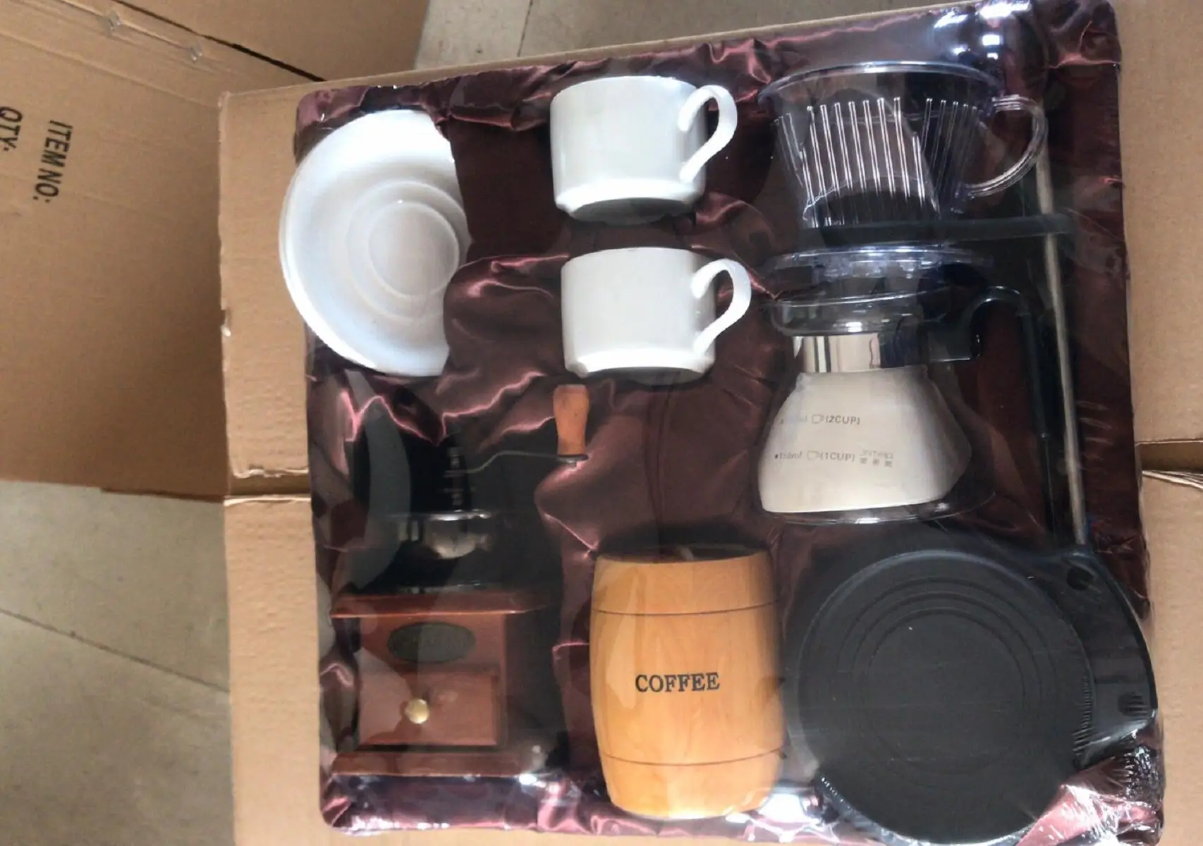 coffee dripper set+coffee grinder+ cups+ bean storage barrel