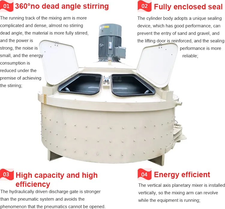 4,Vertical planetary concrete mixer 1000Liter with Mixing blades high nickel alloys are more resistant to wear, while a polyurethane blade optional.