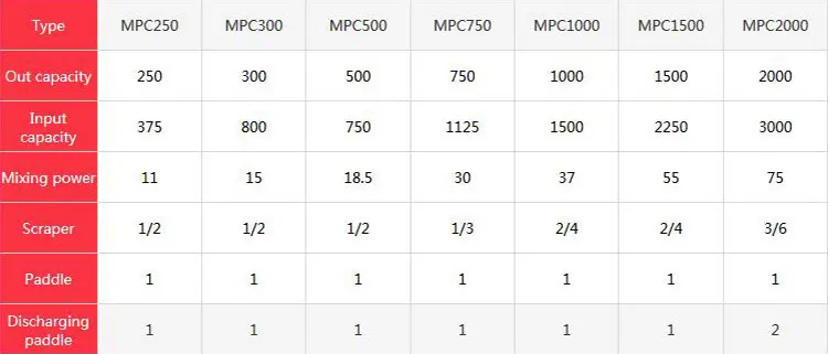 Technical parameters -MPC1000Liter 1M3 Vertical planetary concrete mixer with spare parts