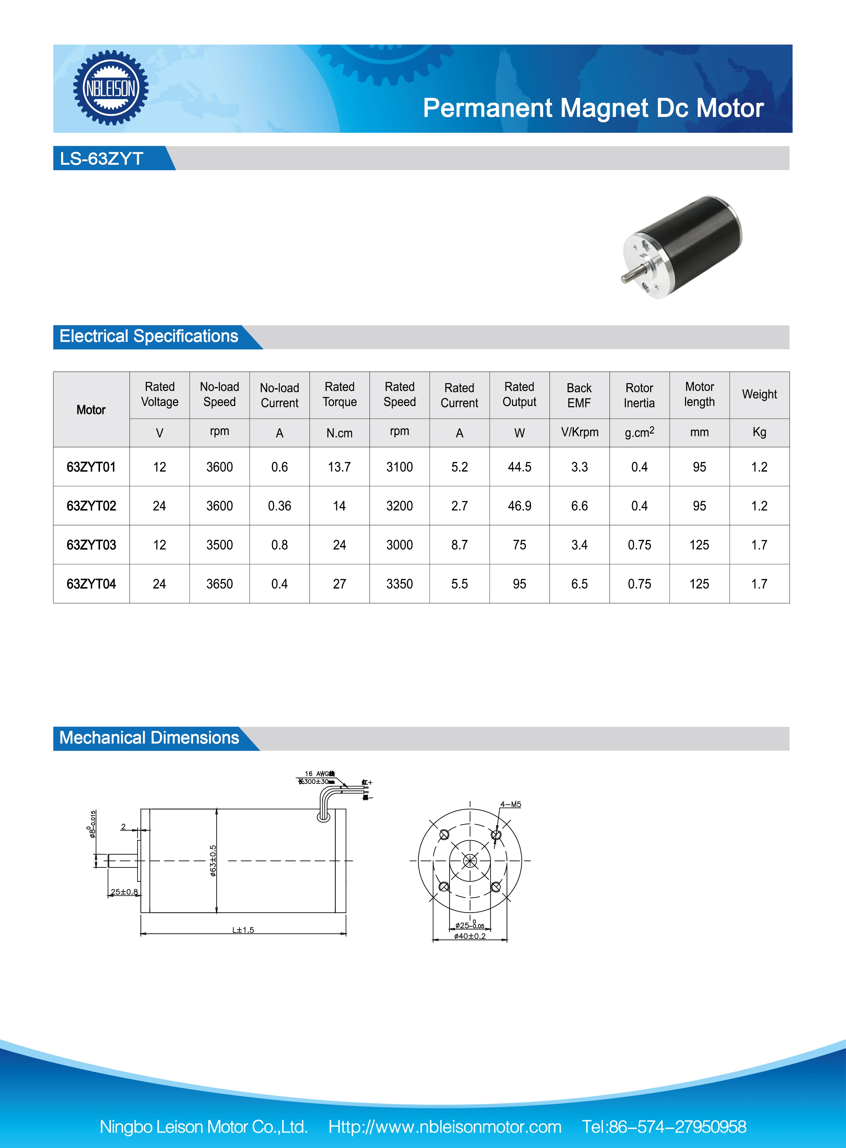 1) DC Brush Motor: 6-130mm diameter, 0.01-1000W output power