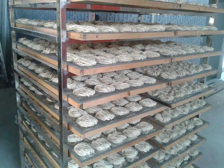 * Reduce the temperature for heat dissipation: After the phases above, noodles are almost dehydrated and their structure is fixed. At this moment, you can keep the air moving to lower the temperature of noodles and to remove some water until their moisture content satisfies the quality standards. Hold the airing temperature at 26-28°C and the humanity at 50-60% RH for about 90 minutes.