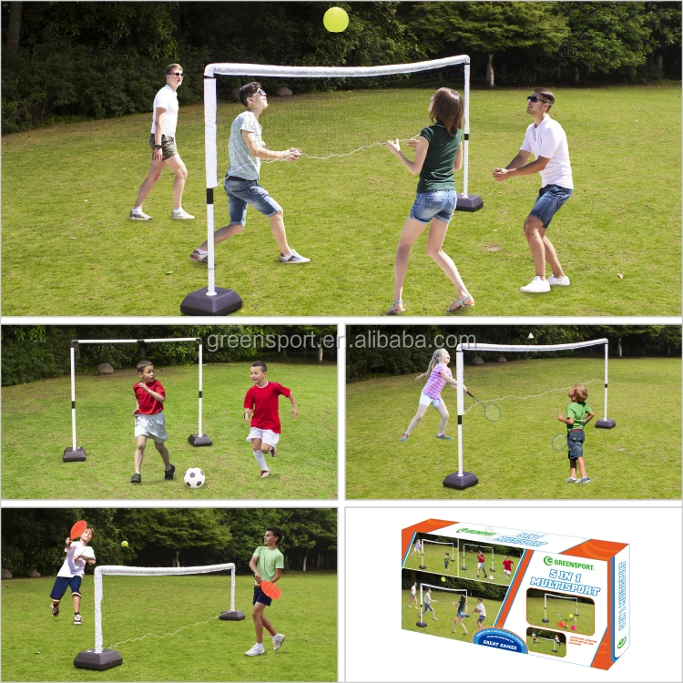 Products include | 1 SET OF PLASTIC POLES WITH BASES AND NET + BADMINTON SET + PLASTIC TENNIS SET + FLYING DISC + 6" PUMP + 7" VOLLEYBALL + 6" FOOTBALL | |||||||