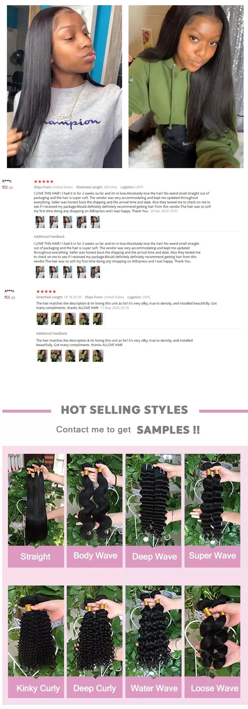 Hair Texture | Body wave, Straight, Deep wave, Loose wave, Kinky curly, Afro curly, JBW, Funmi, Spring curl and yaki, etc |