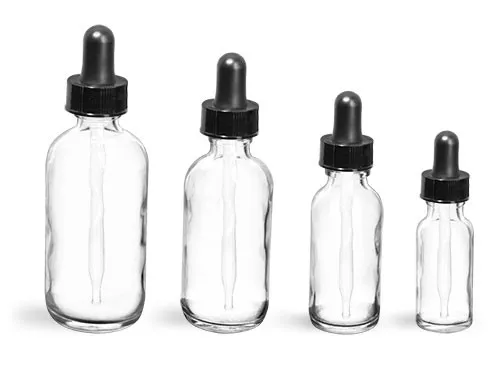 Glass Bottles, Clear Glass Boston Round Bottles with Black Bulb Glass Droppers