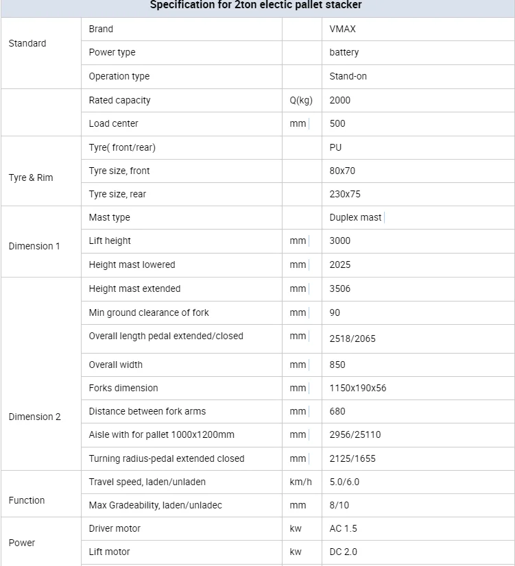 Electric Stakcer Features: