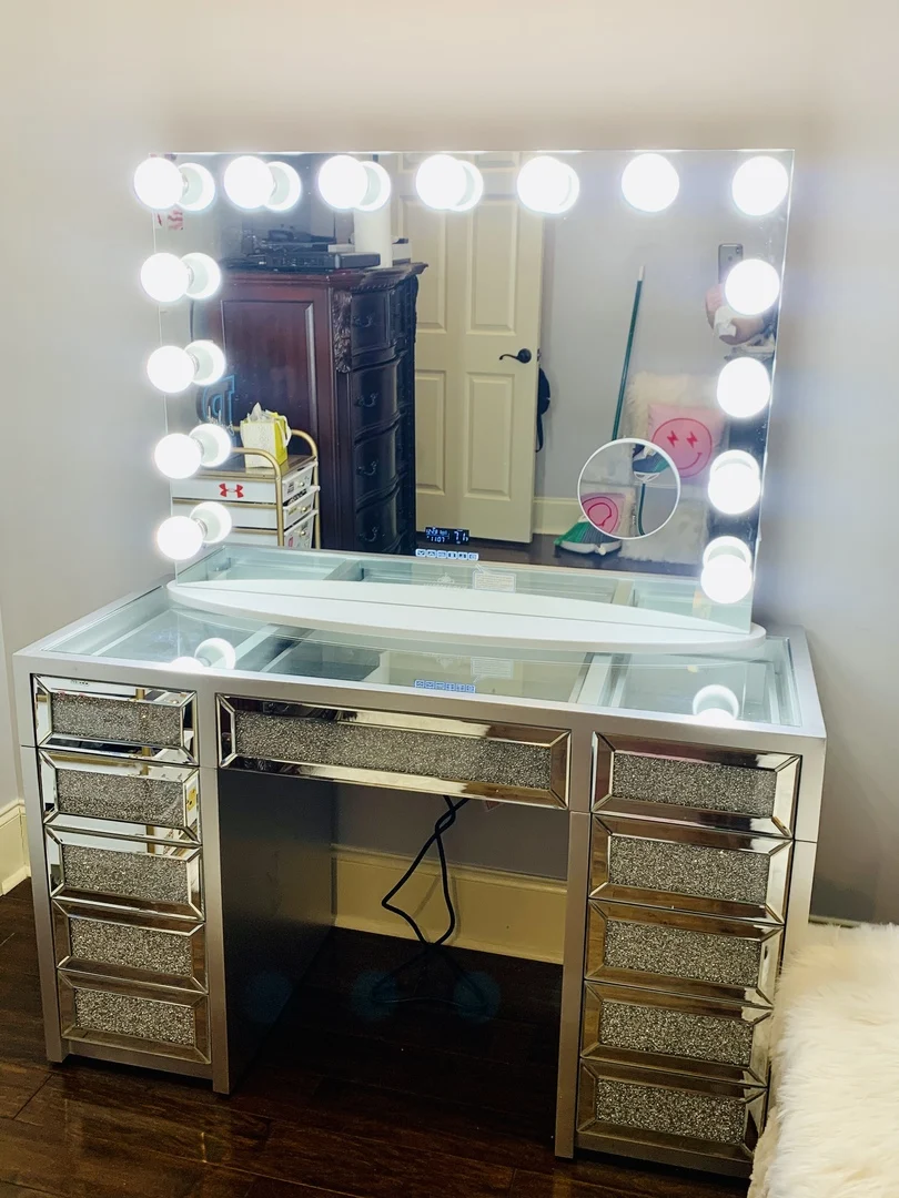 Product Name | Hollywood Lighted Mirror Vanity Makeup Dressing Table Set Stool | |