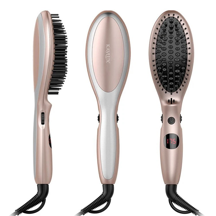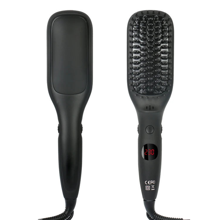 ● For the treatment to be more effective, the nylon tips place your hair as close to the heating element as possible without pulling it. The smoothing brush's plate and ceramic bristles work together to perfectly straighten hair: the heat is evenly distributed. The temperature is adjustable by a digital display from 130 -230°C/265-446°F suitable for all hair types.