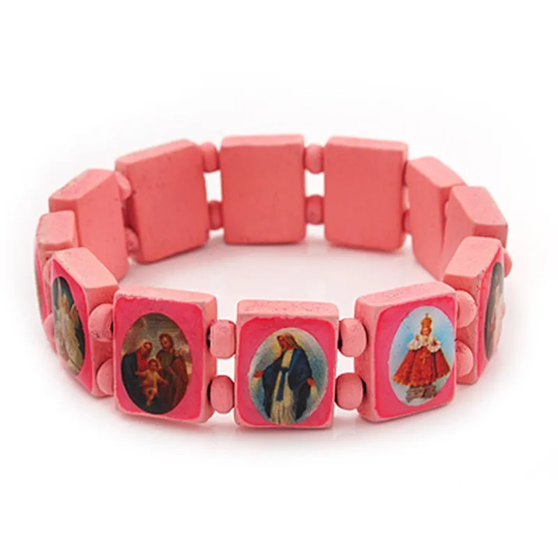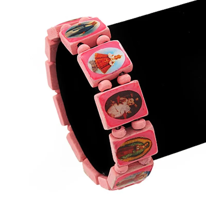 Pink women and men's bangle, personalised jesus religious wooden bracelet, tile bracelets wood bracelets with custom logo