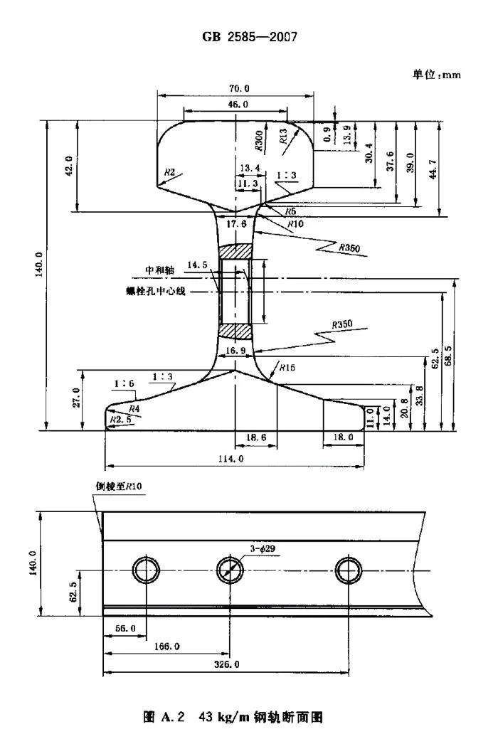 Heavy rail | Height (mm) | Bottom width (mm) | Head width (mm) | Middle thickness (mm) | Length (m) | Weight (kg/m) | Standard |