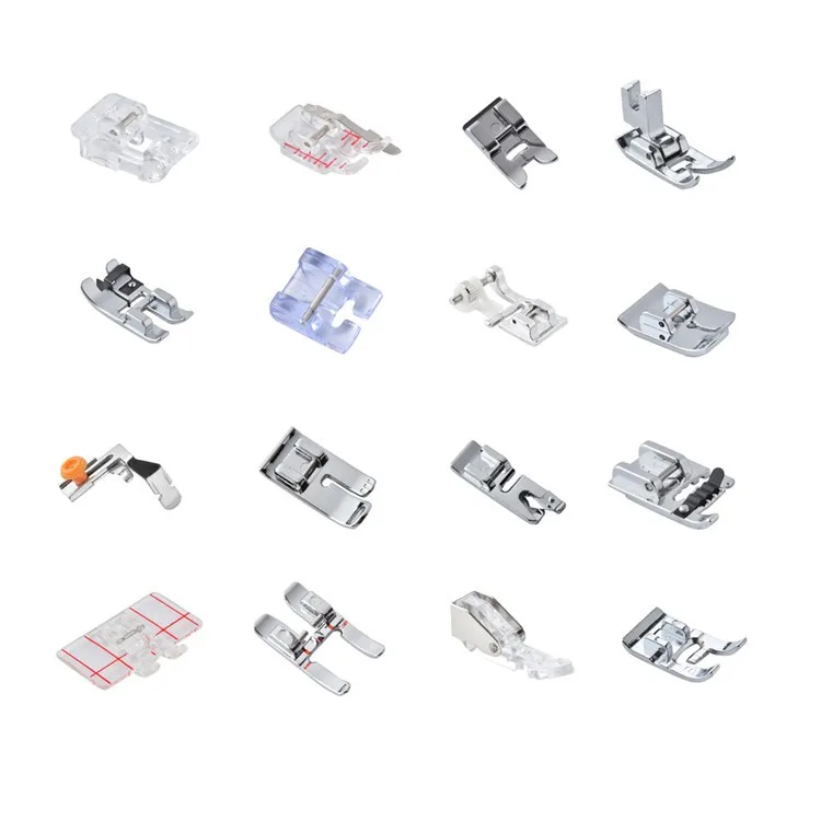 5mm, 7mm, 9mm plastic and metal presser foot. We have different function presser foot for choosing, walking Foot, Concealed Zipper Foot, Quilting Guide etc.