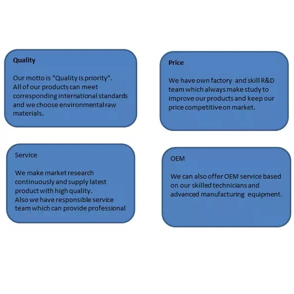 A: Our company always supplies good quality products and we will inspect the goods before shipping. We greatly want to establish a long term business relationship with every customers.