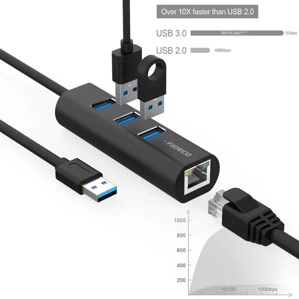 wholesale 3 usb hub with rj45 ethernet adapter usb 3.0 to ethernet lan adapter