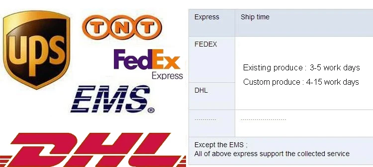 13 | Shipping | Usually ship by DHL, Fedex, EMS or UPS, TNT. For big quantity can ship by sea. |