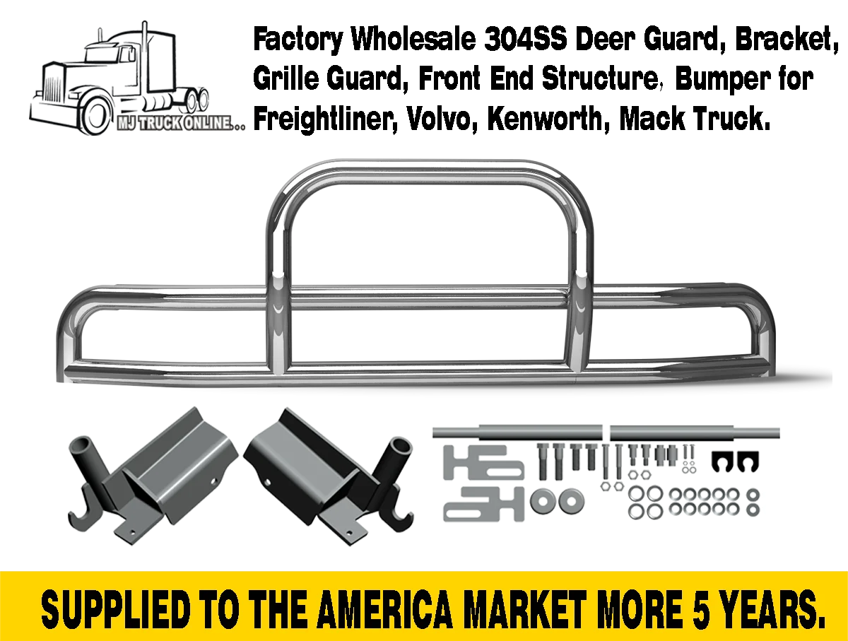 We are specialized in producing stainless steel products such as DEER GUARD, MOUNTING BRACKET, MUD FLAP HANGER, LIGHT BAR, etc. Our products are suitable for many kinds of heavy duty trucks of north America, South America and Mexico market. Our factory is located in the Zeng cheng Town of Guangzhou, China. We have automatic welding robot, the welding quality is better than manual welding. Our deer guard and bracket have been supplied to our guests of Kentucky State in the Central-eastern United States for more than 5 years. So, our product quality is very good and the price are appropriate.