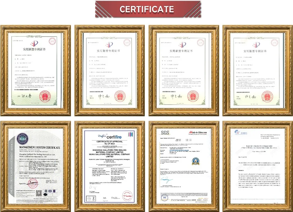 We have achieved ISO9000 certificate , UK CERTIFIRE certification from UK Warrington Fire Research Centre and other international testing institutions. All products comply with requirements of BS476 part 20-22, and EN BS 1634-3, EN BS13501-2. We have exporting to Europe, America, and Asia as well as other countries.