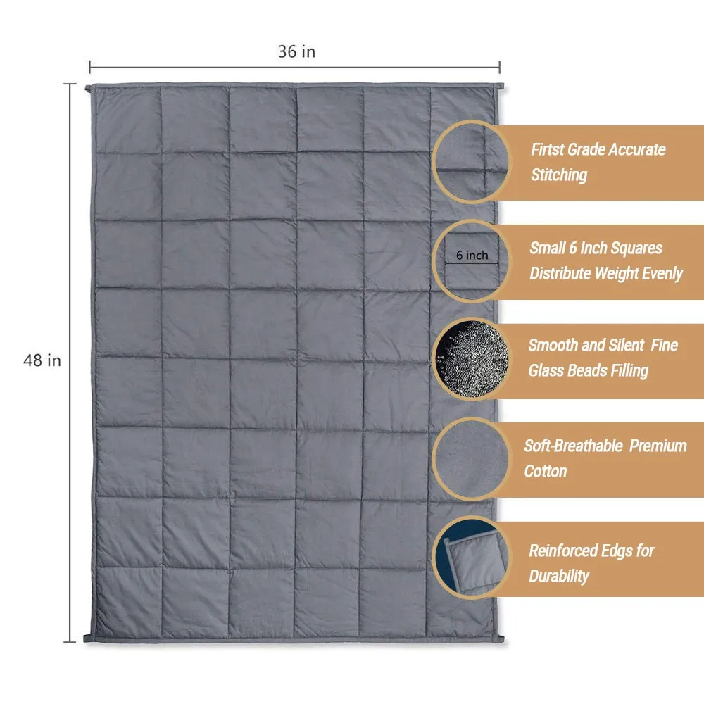 ✔️ COLORS TO MIMIC AN ELEPHANT-- Our soft and breathable weighted blanket is made of 100% organic cotton material and filled with certified non-toxic natural glass beads. Unlike inferior poly-pellets which are detrimental to our environment, glass beads basically become sand once no longer in use.