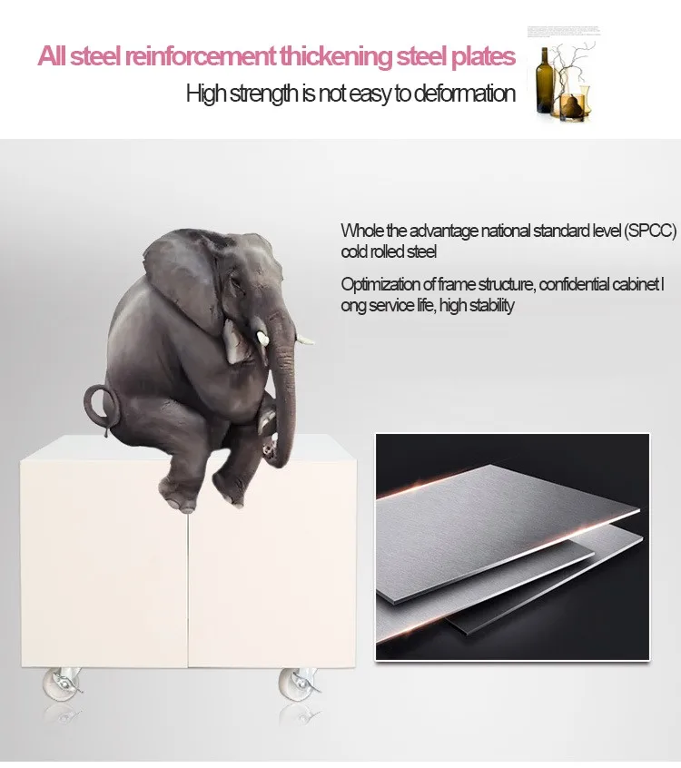 Metal movable rectangle printer storage cabinet for home office bank