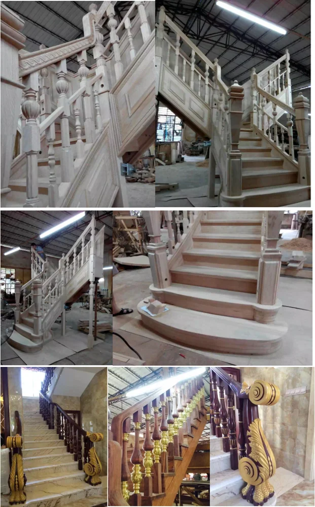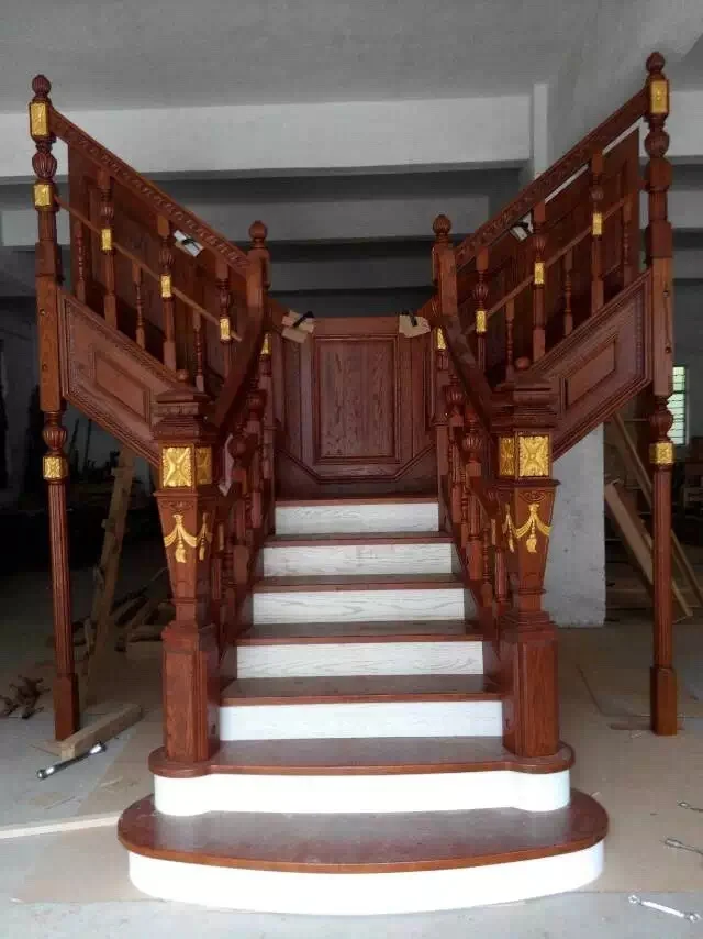 American Red Oak Interior Antique Carved Wood Staircase