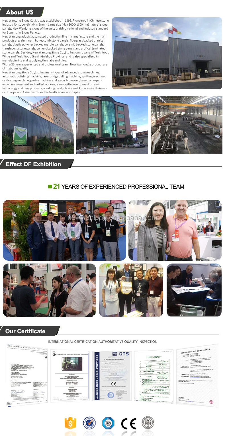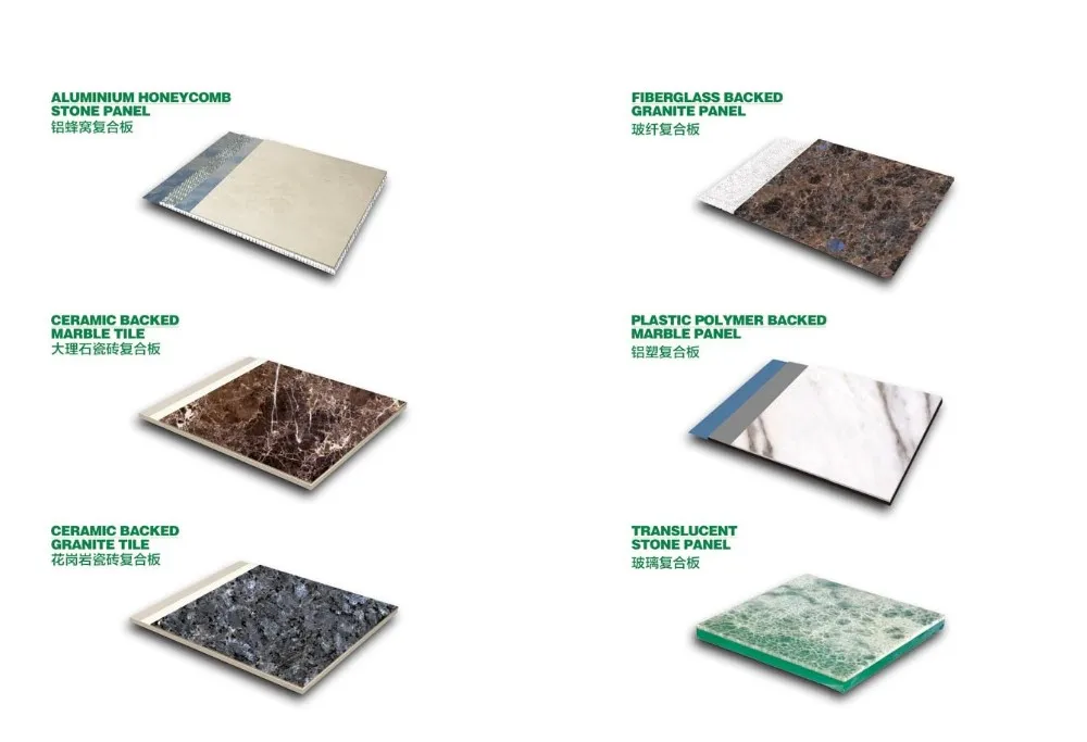 Composition: minimum 3-4mm stone veneer + 6mm ~ 50mm Fiberglass honeycomb substrate,