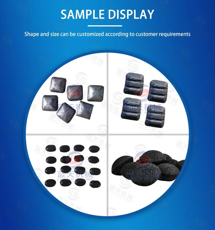 Charcoal machine can be used to press coal powder, iron powder, coking coal, aluminum powder, iron scrap, carbon powder, slag, coke and other powder. The material made by charcoal briquette machine price is energy saving and environmental friendly, easy to transport, improves the utilization rate of waste, and has good economic and social benefits.