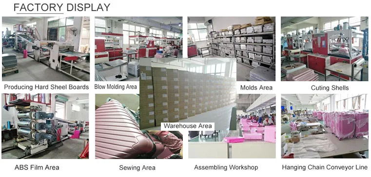 Xingan County Feiyang Luggage Co., Ltd., luggage factory specializing in making PC/ABS /Oxford fabric trolley luggage, luggage bag, briefcase luggage,kids luggage, lady comsetic bag, etc, we have 4 product lines, 300 workers, production capacity is 60000pcs/month. Own research, development, production, sale department with specialized & experienced team.