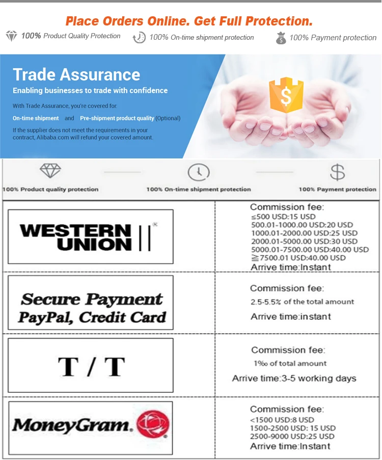A6: For small quantity we only accept 100% T/T,