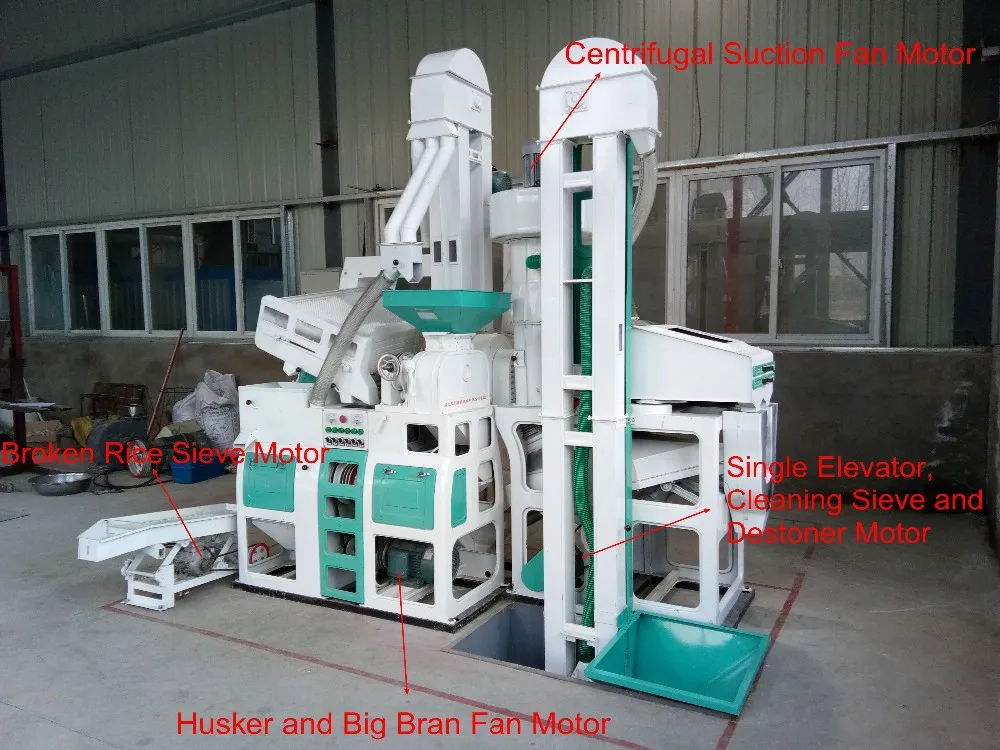 There are total seven motors with our rice mill machine.