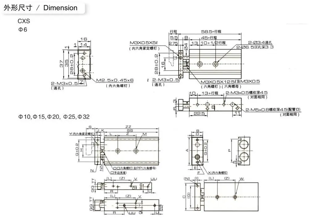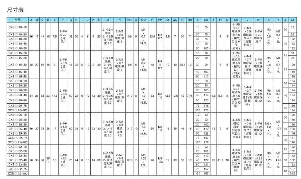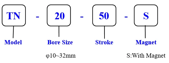 1. The bore size of TN series dual rod cylinder is from φ10 to φ32mm;
